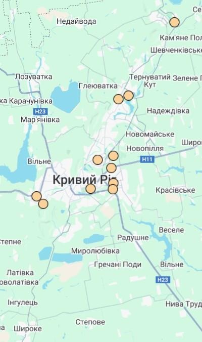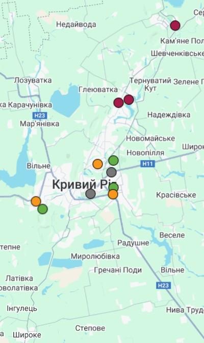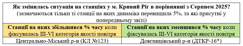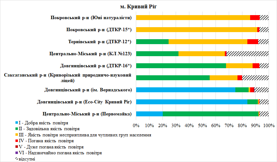 | Станції, де даних менше 50% за місяць | 2 | Довгинцівський р-н (Криворізький Ліцей №129 КМР);Металургійний р-н (КГ №16 КМР) |