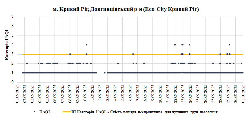 Ⅰ. Проведений аналіз даних якості атмосферного повітря у місті Кривий Ріг зі станцій Української мережі громадського моніторингу якості повітря Eco City за Вересень 2025 року.