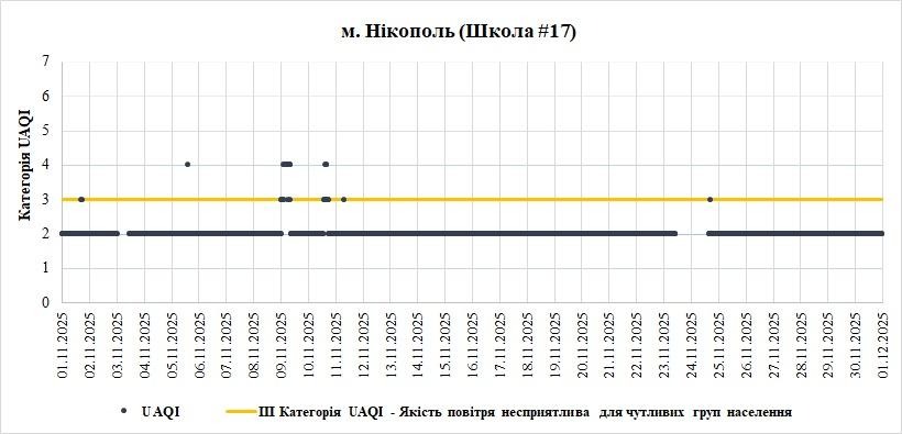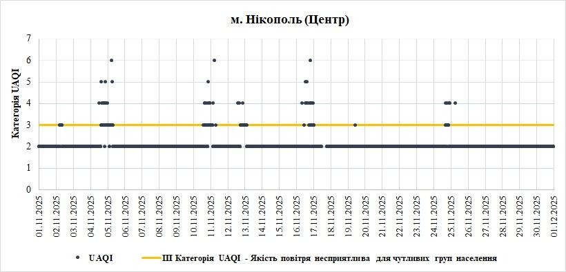 Фахівці з Центру екологічного моніторингу проаналізували якість атмосферного повітря у місті Нікополь, на Дніпропетровищині, в листопаді.  Дані взяли зі станцій Української мережі громадського моніторингу якості повітря Eco City за листопад 2025 року