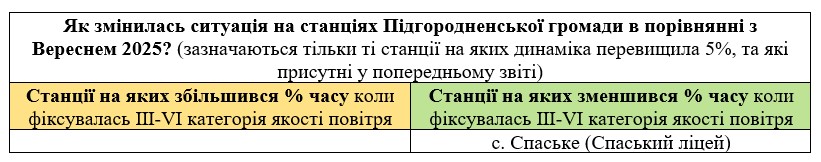 Чи якісним було повітря у Підгородненській громаді, в жовтні?