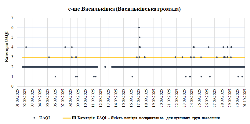 За Вересень аналізувались дані зі станції моніторингу, яка розташована у селищі Васильківка Синельниківського району Дніпропетровської області. Станція має назву «Васильківська громада» та вимірює наступні показники: