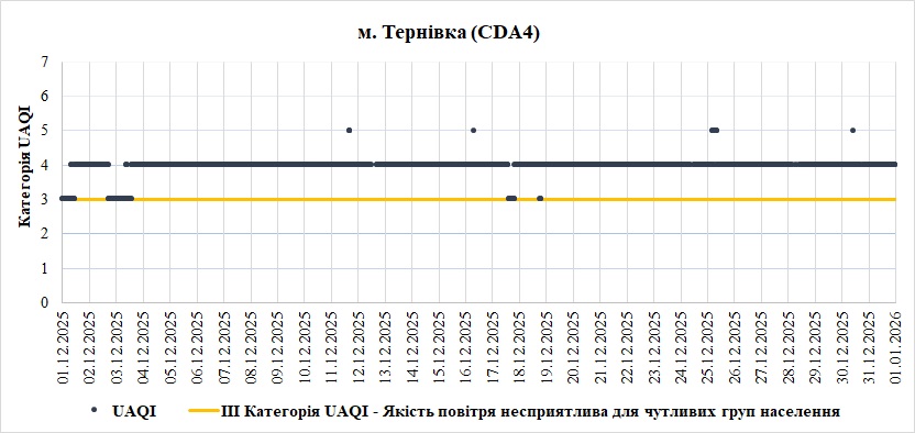 За грудень аналізувались дані з 1 станції моніторингу «CDA4» яка розташована у м. Тернівка.