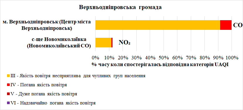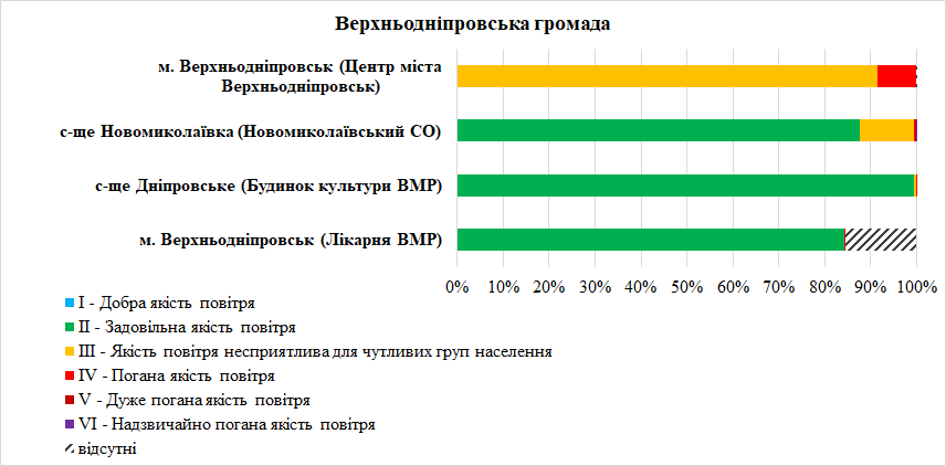 Станції, на яких якість повітря не перевищувала Ⅲ категорію, або таких значень було менше 5%2м. Верхньодніпровськ (Лікарня ВМР)с-ще Дніпровське (Будинок культури ВМР)