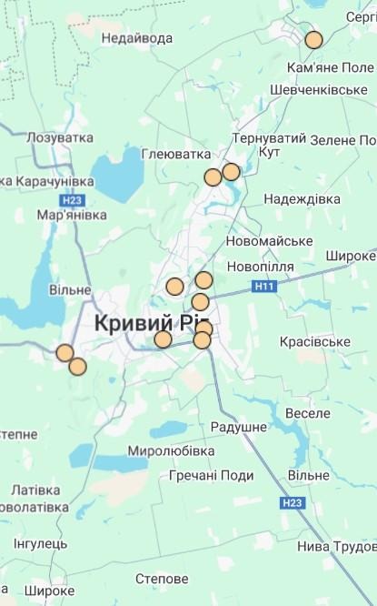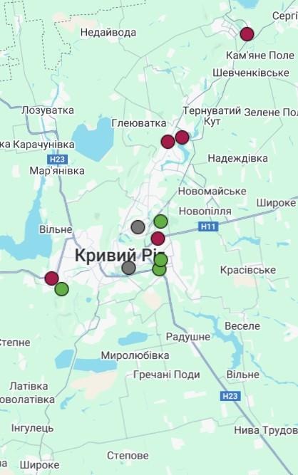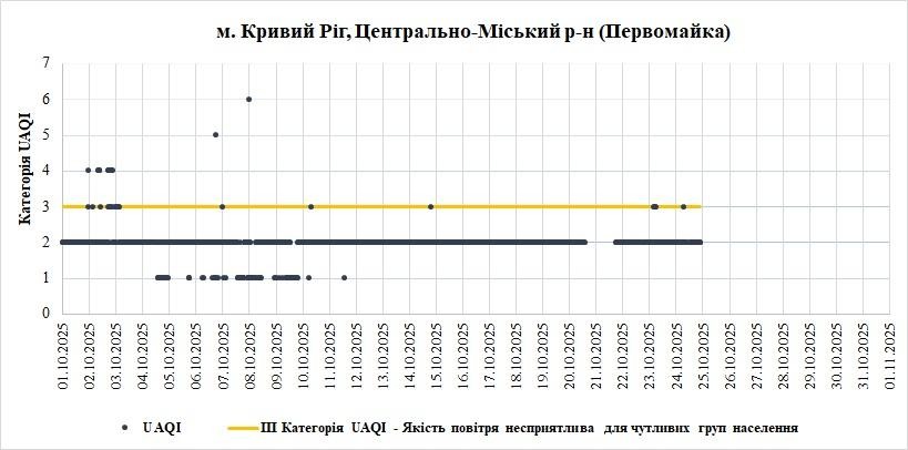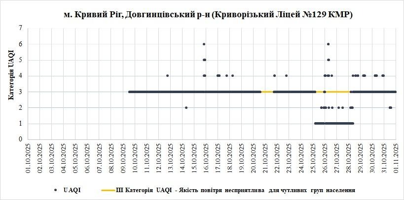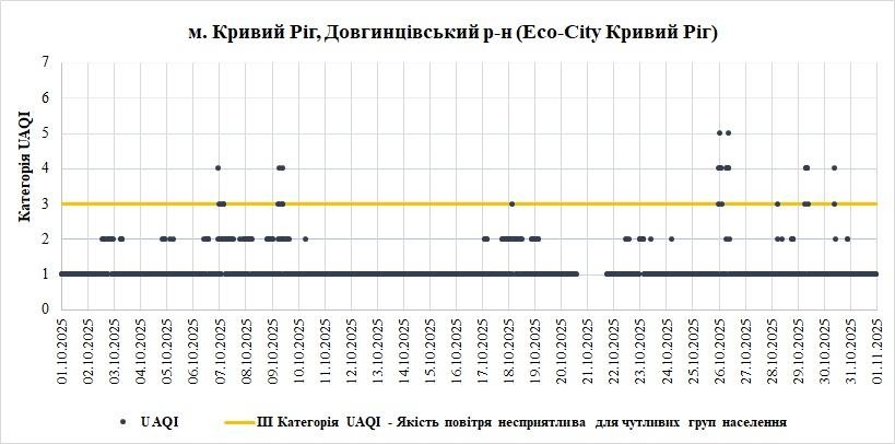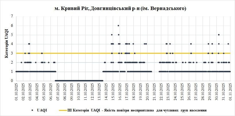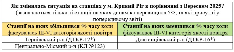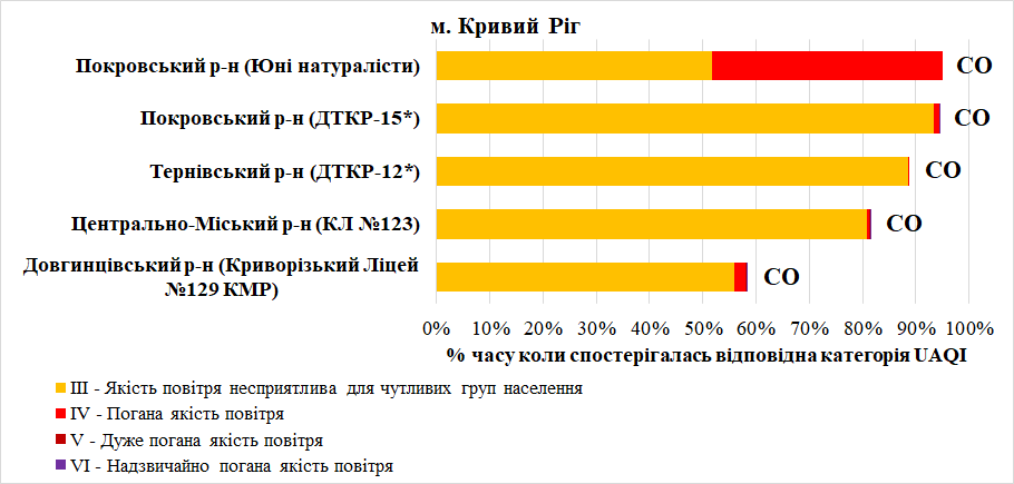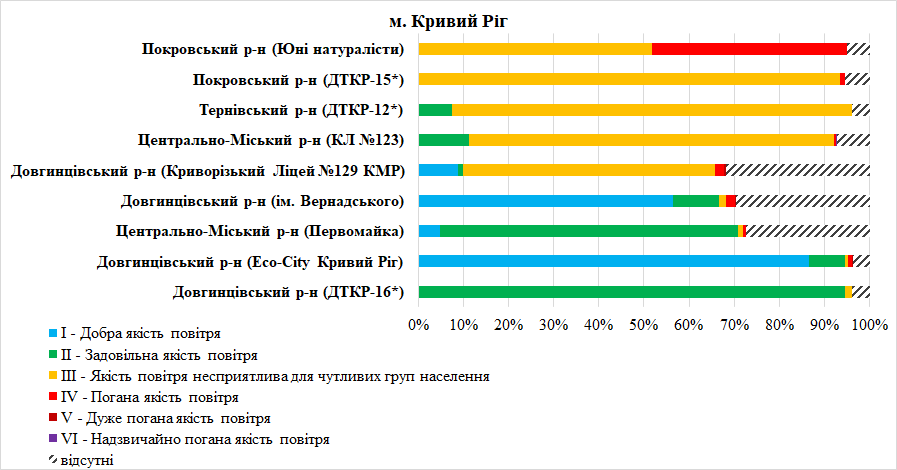 | Станції, де даних менше 50% за місяць | 2 | Саксаганський р-н (Криворізький природничо-науковий ліцей);Металургійний р-н (КГ №16 КМР) |