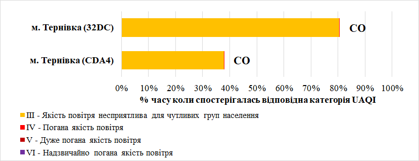 | Станції на яких фіксувалась якість повітря категорії Ⅲ та гірше 5-100% часу за місяць | 2 |