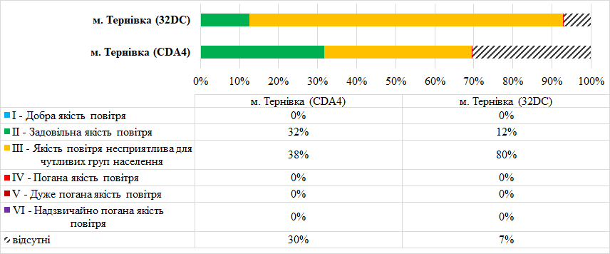 - м. Тернівка (CDA4) – 30% даних відсутні;