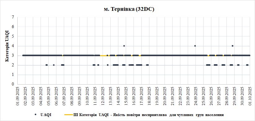 Експерти ЦЕМ проаналізували якість атмосферного повітря у Тернівці, на Дніпропетровщині. Дані взяли з зі станцій Української мережі громадського моніторингу якості повітря Eco City за Вересень 2025 року.