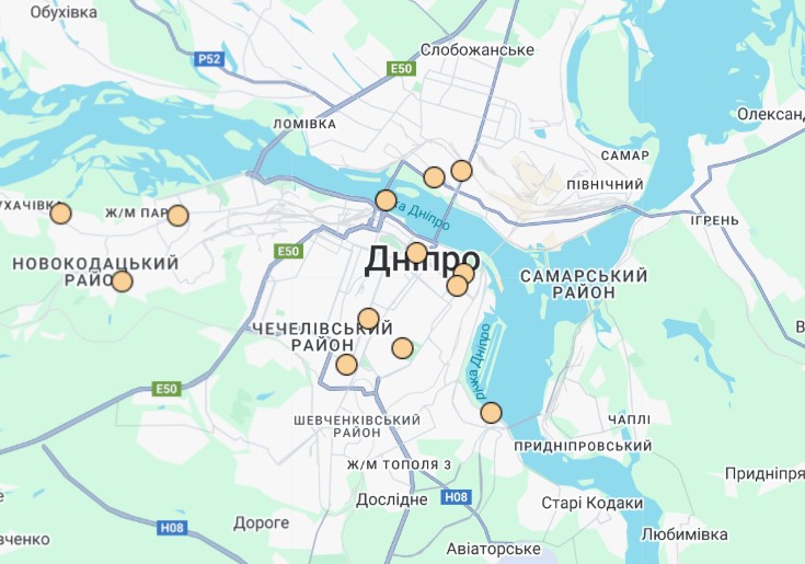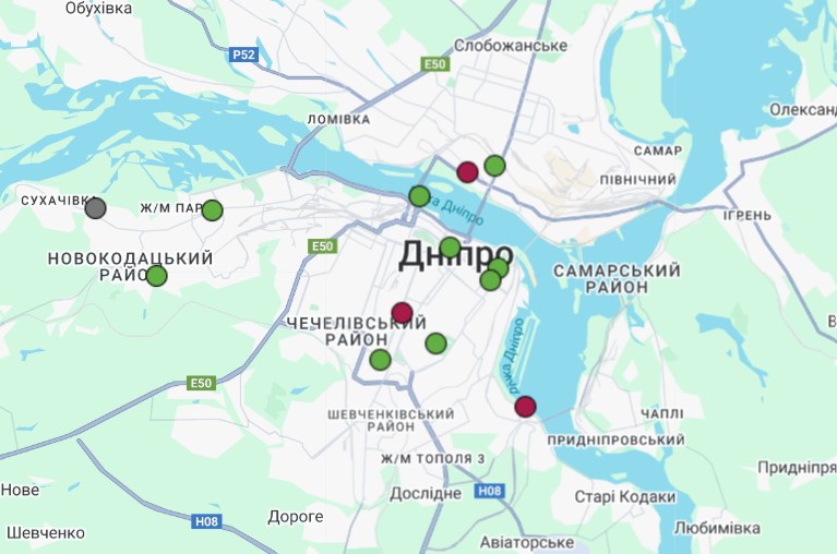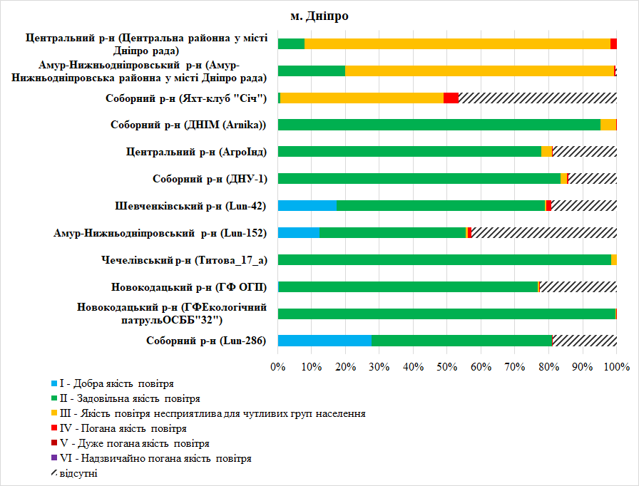 • м. Дніпро, Новокодацький р-н (ГФ ОГП «Екологічний патруль», Сухачівка) – 88% даних відсутні;