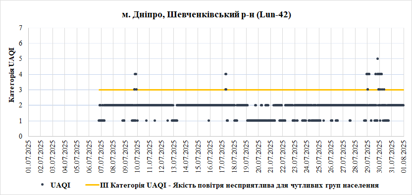 Ⅰ. Аналіз даних якості атмосферного повітря у місті Дніпро зі станцій Української мережі громадського моніторингу якості повітря Eco City за Липень 2025 року.