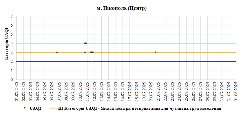 У липні на станціях в Нікополі переважно спостерігалась задовільна якість повітря.
