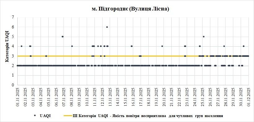 Ⅰ. Аналіз даних якості атмосферного повітря у Підгородненській територіальній громаді, за даними зі станції Української мережі громадського моніторингу якості повітря Eco City за Листопад 2025 року.