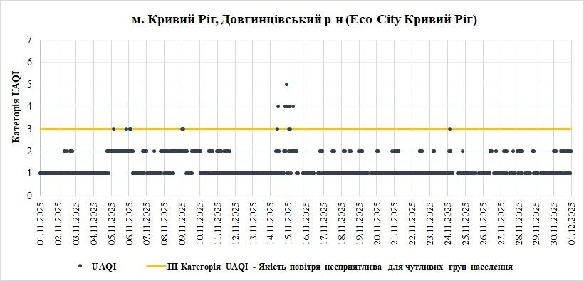Експерти ЦЕМ проаналізували якість атмосферного повітря в Кривому Розі. Дані взяли зі станцій Української мережі громадського моніторингу якості повітря Eco City за Листопад 2025 року.