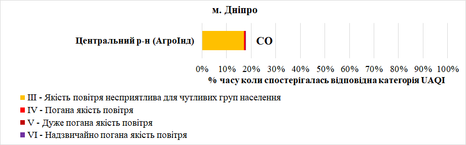У серпні найгірша якість повітря спостерігалась на станції «АгроІнд» (Центральний район). Переважною забруднювальною речовиною, що найчастіше впливала на індекс якості повітря – монооксид вуглецю (СО).