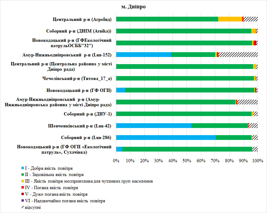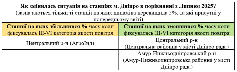Станції, де даних менше 50% за місяць2Соборний р-н (Яхт-клуб “Січ”);Шевченківський р-н (Шевченківська районна у місті Дніпро рада)