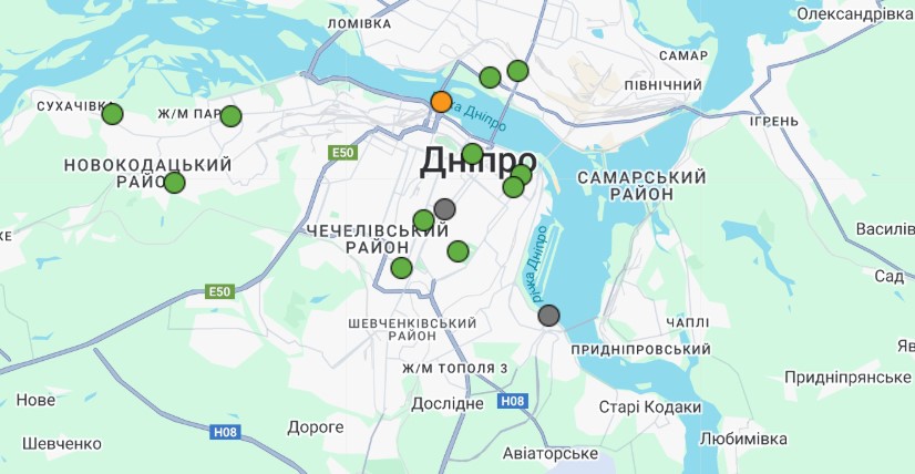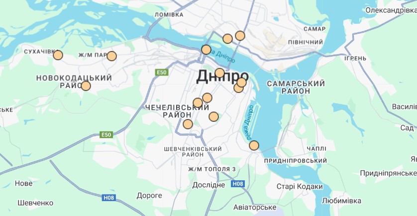 • м. Дніпро, Соборний р-н (Яхт-клуб “Січ”) – 70% даних відсутні;