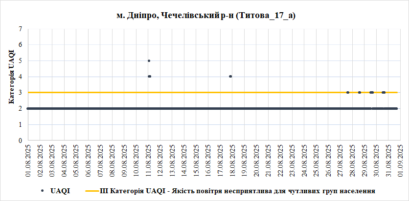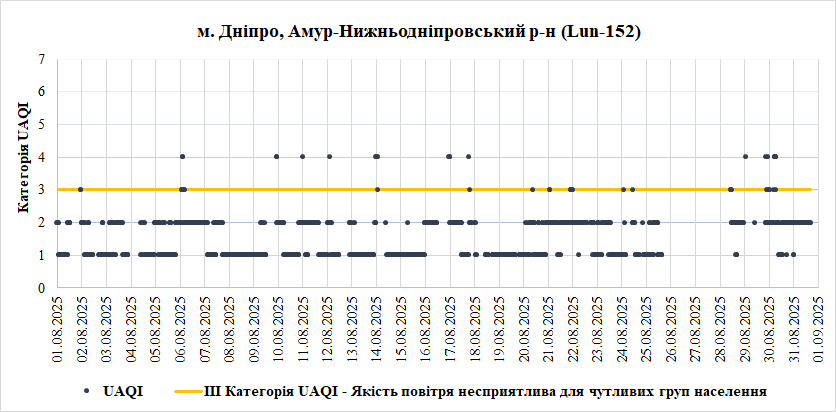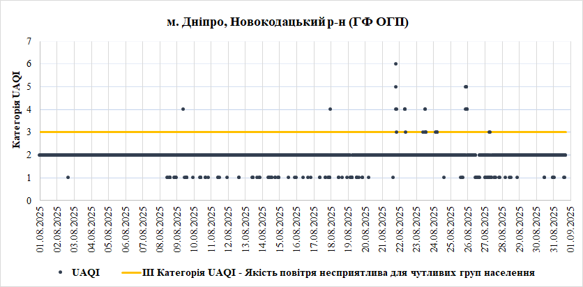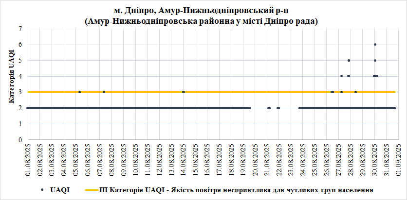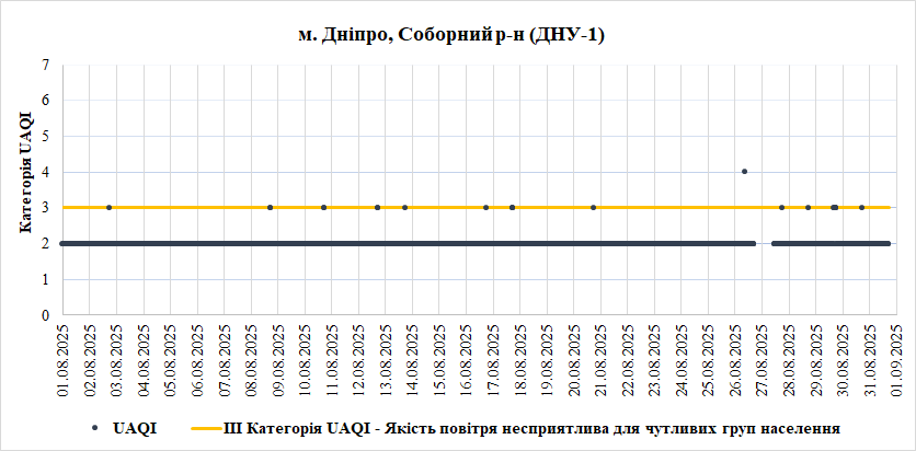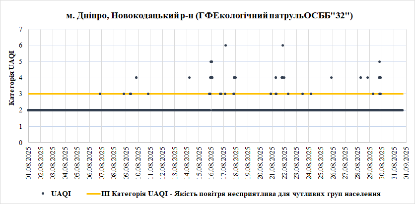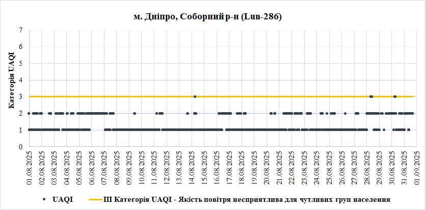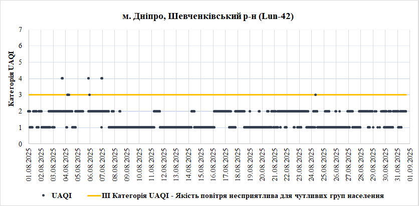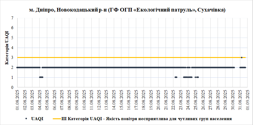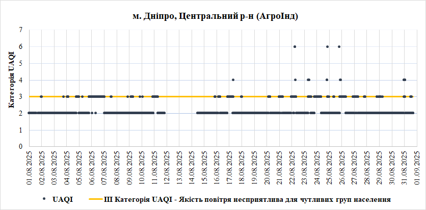 Ⅰ. Аналіз даних якості атмосферного повітря у місті Дніпро зі станцій Української мережі громадського моніторингу якості повітря Eco City за Серпень 2025 року.